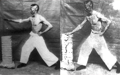 The picture shows Ku Yue-Chang demonstrating his famous Iron Palm by